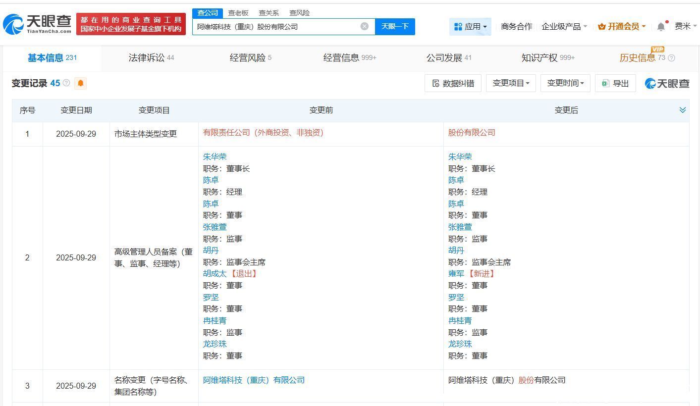 天眼查App显示,近日配资指数平台,阿维塔科技(重庆)有限公司发生工商变更,企业名称变更为阿维塔科技(重庆)股份有限公司,同时发生高管变更。